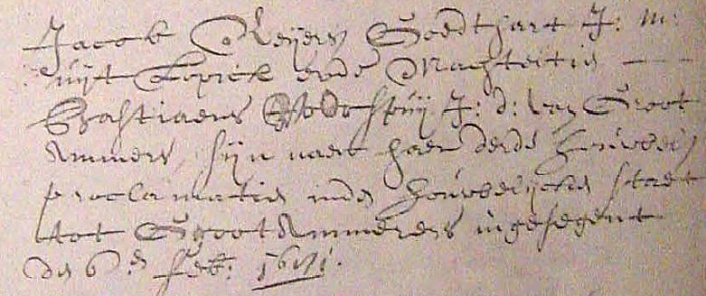 Jacob Reijersz Goedhart, jm. van Lopik, won. huijs no.132 otr/tr. 31-1/16-2-1681 Grootammers, (otr. ook te Lopik) Machteltjen Bastiaense Voorspuij, jd. van Grootammers Woont in Lopik in huis nr. 132