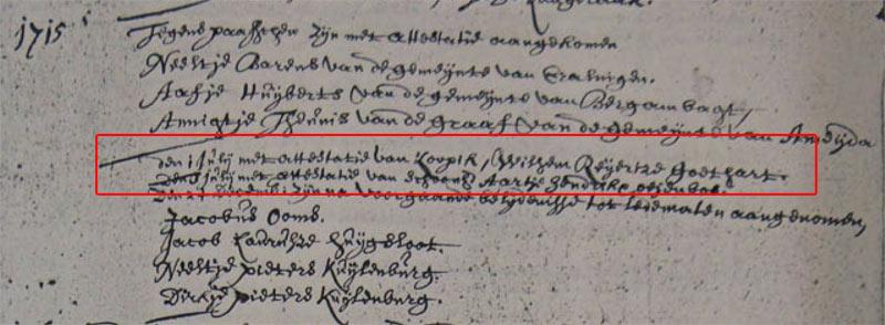 Willem Goedhart, treed op 23 oktober 1735 in het huwelijk. Bron: trouwboek 8, pagina 20 uit Schoonhoven, volgens een districtklapper (pagina 41 – District Krimpenerwaard) op de (onder)trouwregisters in de provincie Zuid-Holland, inventaris 257, gahetna.nl: http://proxy.handle.net/10648/ebbe13dd-551b-4876-abe5-6f68cf4aaeef |