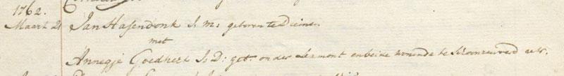 Het doopboek van Zijderveld bevat de dopen van kinderen van Jan Hasendonk: 29-6-1766 Cornelis Hasendonk; 15-10-1769 Haasje Hasendonk. |
