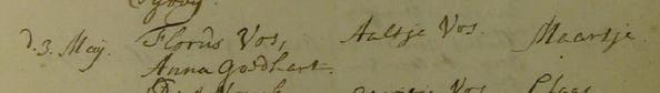 Uit dit huwelijk: Hendrik Vos (meerderjarig in 1763) en Marrigje Florisse Vos |