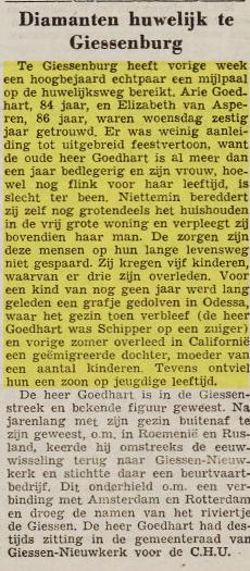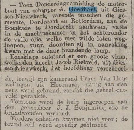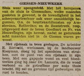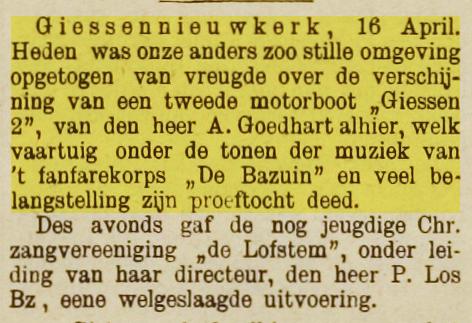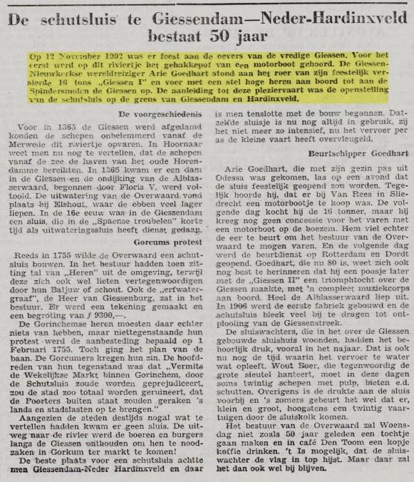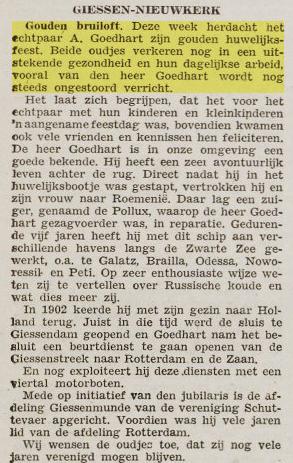 Op 5-1-1948 verkocht: A. Goedhart expeditiebedrijf:Beurtvaart op Rotterdam, Amsterdam en Zaanstreek. Schepen: Giessen II; III; IV en V.