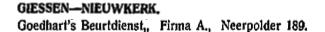 1925: Bedrijf gevestigd: Neerpolder 189, Giessen-Nieuwkerk;