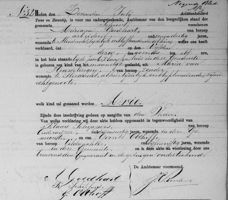 Geboren in het huis staande bij de Jacob Klaasensluis in Schoorl;