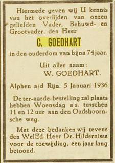 Geboren om 23:00 Ter Aar, wijk C (Korteraar), nr 5; Adressen in Oudshoorn (1898): wijk 2, nr 87; (>1900) wijk 3, nr 388; Beroepen: 23-5-1912: Schipper, 20-5-1915: Winkelier te Oudshoorn, 18-11-1915: Arbeider