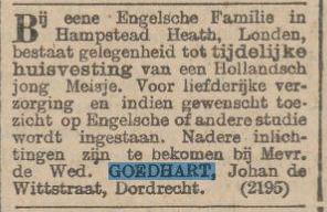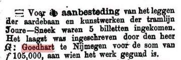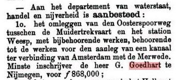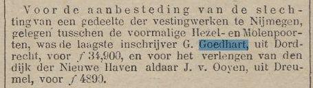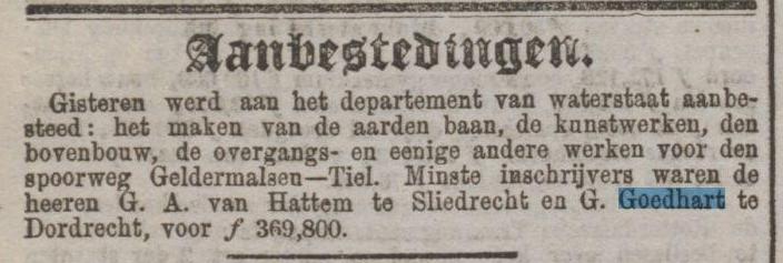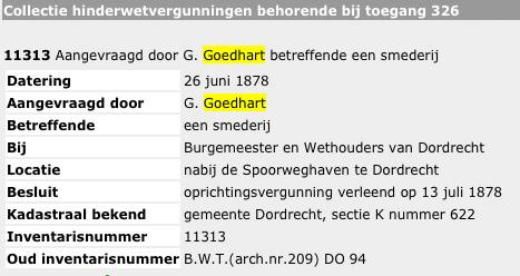 In adresboek Dordrecht, uitgave 1879, Aannemer G. Goedhart, adres: Johan de Wittstraat No. 252p. Gerrit is begraven op Alg. Begraafplaats te Dordrecht, in veld C; rij i; no. 23 In 1870: opzichter Staats Spoorwegen