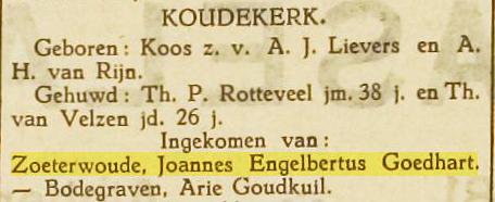 In de laatst gehouden vergadering is .... gekozen .... tot secretaris-penningmeester van den Lagewaardschen en Bruimaadschen polder de heer J. E. Goedhart alhier.