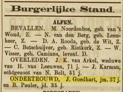 Getuigen zijn onder andere: de broers Aart Goedhart, arbeider te Hekendorp en Nicolaas Goedhart, sigarenmaker te Woerden. |