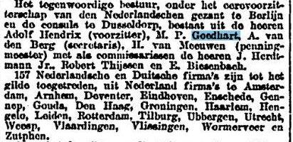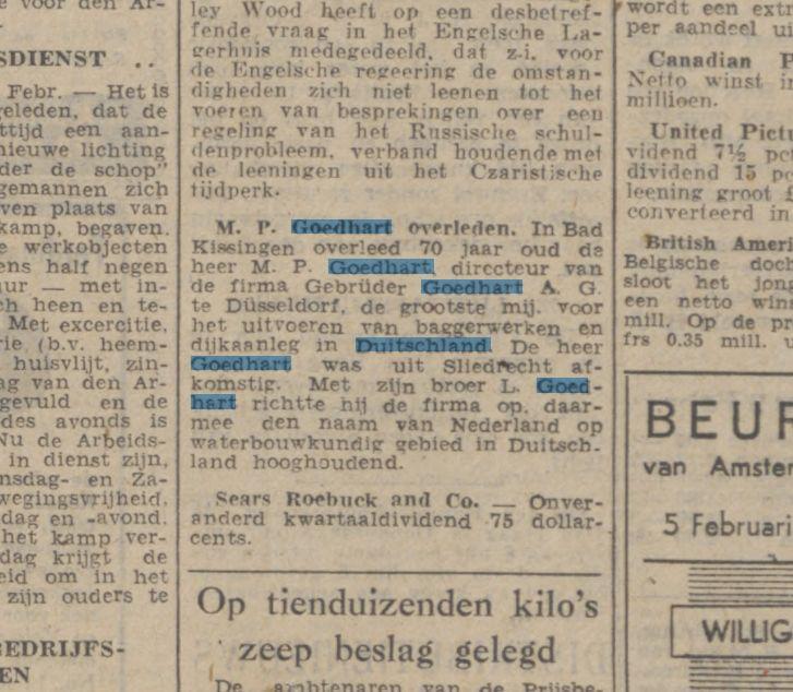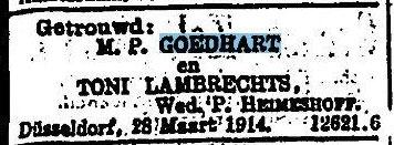 Weduwe van P. Heimeshoff; moeder van Hilde Goedhart, geb. Heimeshoff; Ilse Witthause, geb. Heimeshoff, gehuwd met Wernher Witthaus; Gerbren Goedhart (bron: Deutsche Zeitung in den Niederlanden, 26-1-1943) |