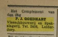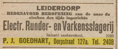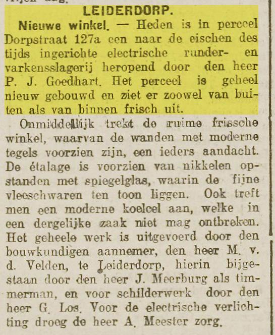 Slagerij gevestigd aan de Dorpsstraat te Leiderdorp, deze is later hernoemd in Hoofdstraat (bron: Leiderdorps Museum, feb. 2010)