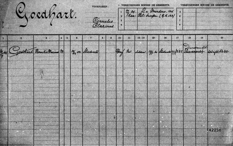 Aanvullend gezinskaart Rotterdam: 1925 Korporaal Politietroepen, adres: Kazerne aan de Pieter de Hoochweg 103 1b. In 1926 vertrokken naar de kogelgieterij aan de Hoornschekade in Delft.