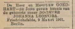 In het gemeentearchief Den Haag vermeldt als: Johanna Eleonora, geboren in het Berlijnse deel: Lichtenberg.