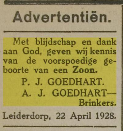 Overlijden gepubliceerd 9-6-1989, Leidsch Dagblad, pagina 4 |