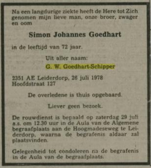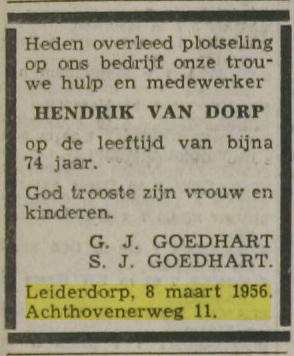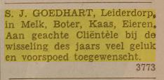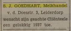 Uit het handelsregister Kamer van Koophandel (publicatie Leidsch Dagblad, 24-10-1934): overleden S. van 't Riet dd 17-11-1934, eigenaar melkhandel Van der Doesstraat 3, Leiderdorp, deze werd overgenomen door Siem Goedhart.