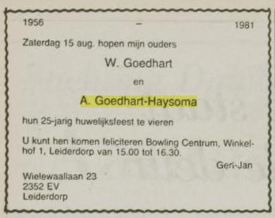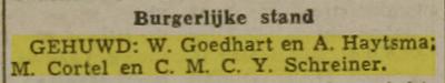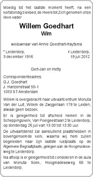 Vanaf feb 1942 vennoot in het melkbedrijf Fa. Goedhart & Zonen; nam later de melkzaak van Siem Goedhart (zoon van Gerrit Goedhart) aan de Doeslaan te Leiderdorp over.